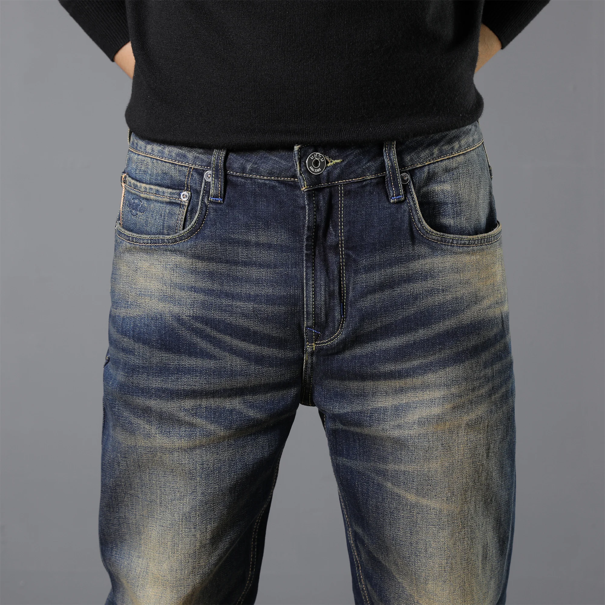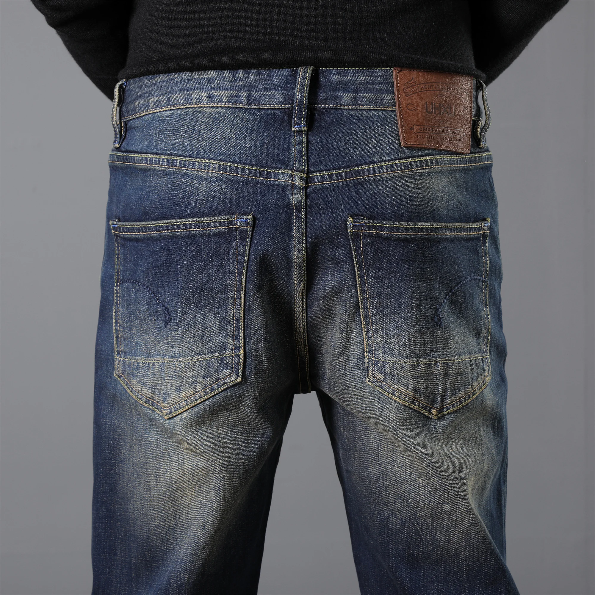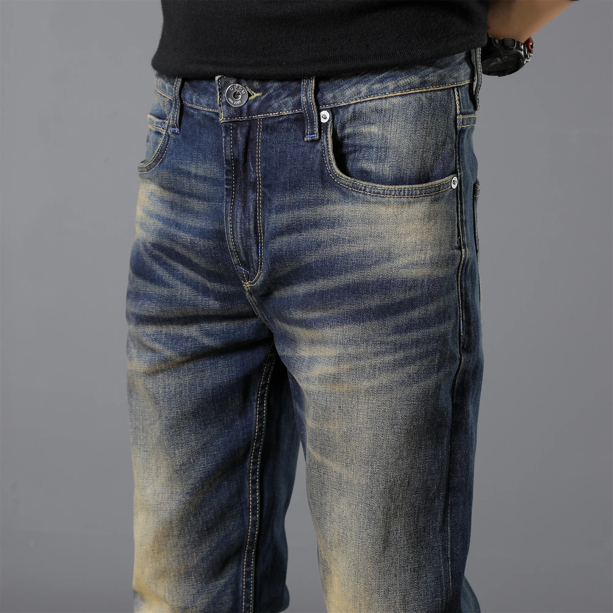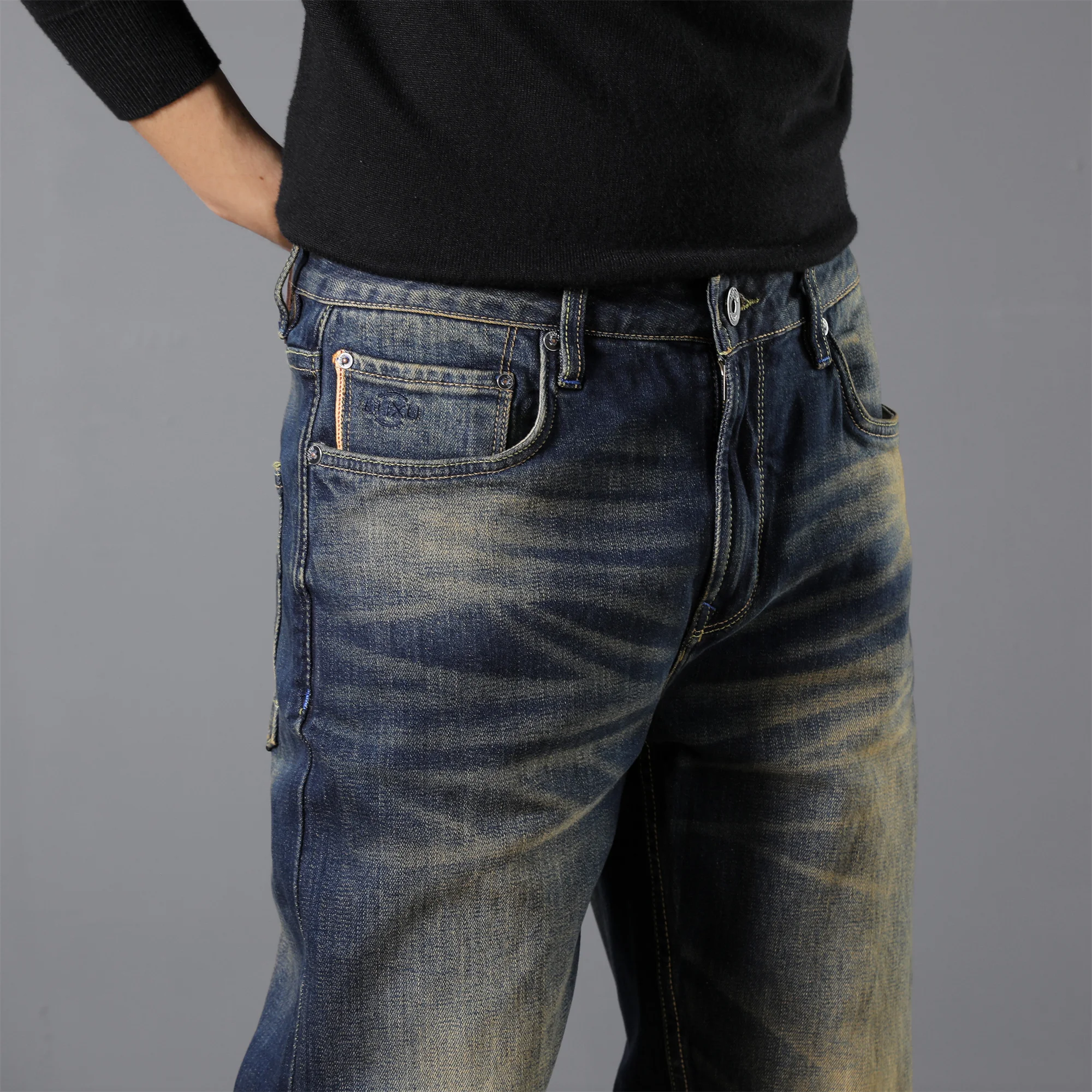 13.5oz 99% Cotton Red Selvedge Denim Men Jeans Retro Distressed Heavy Brushed Washed Straight Pants High Qaulity Casual Trousers