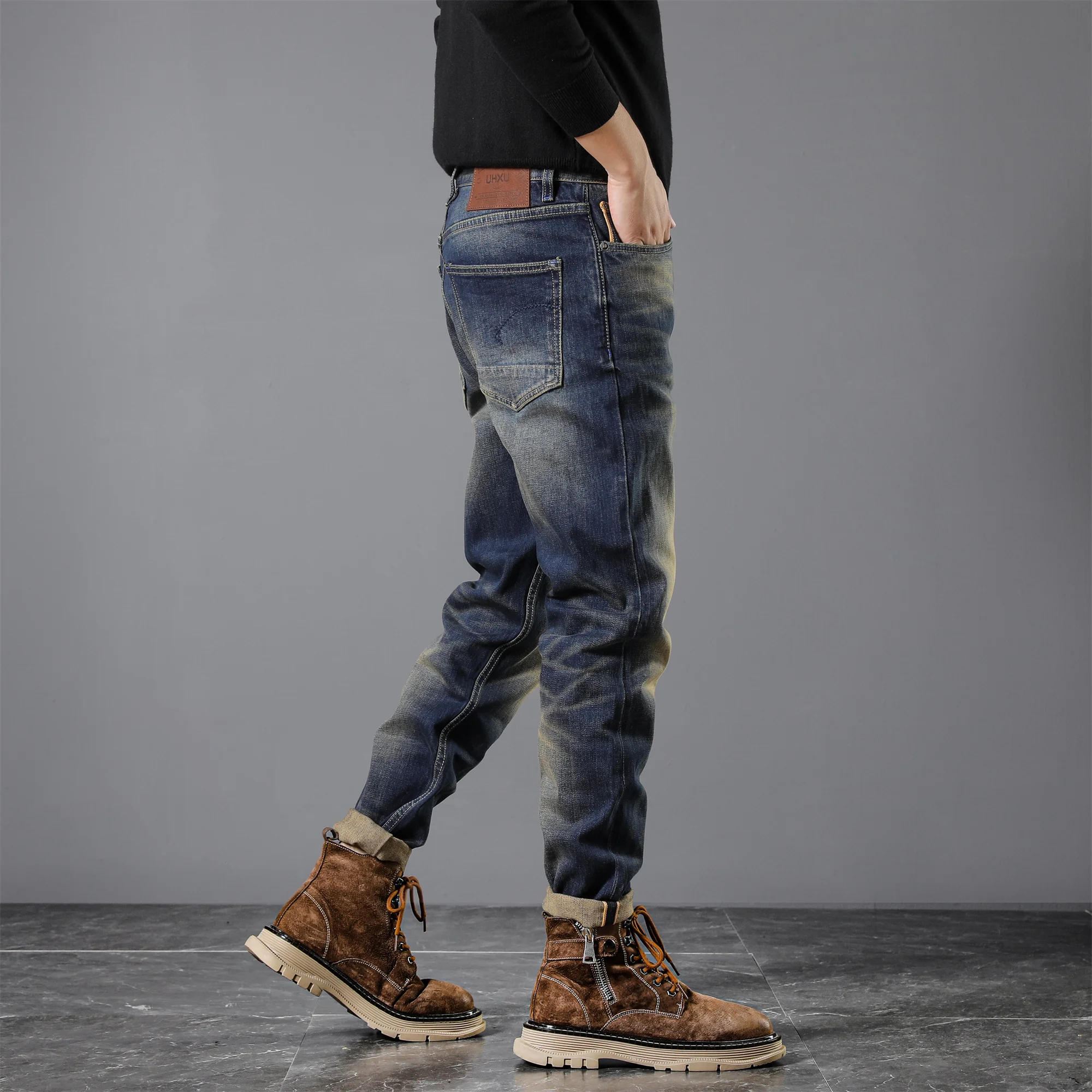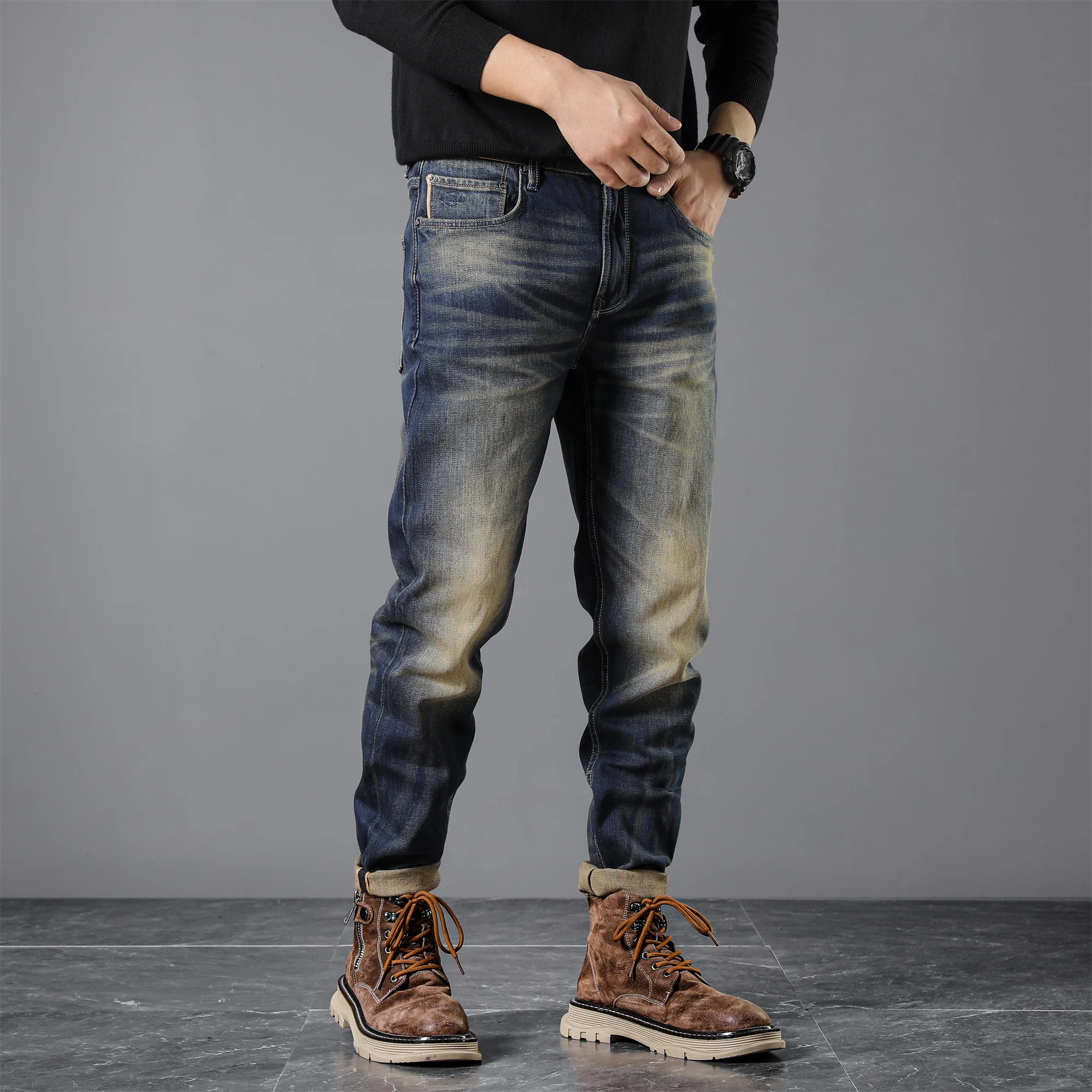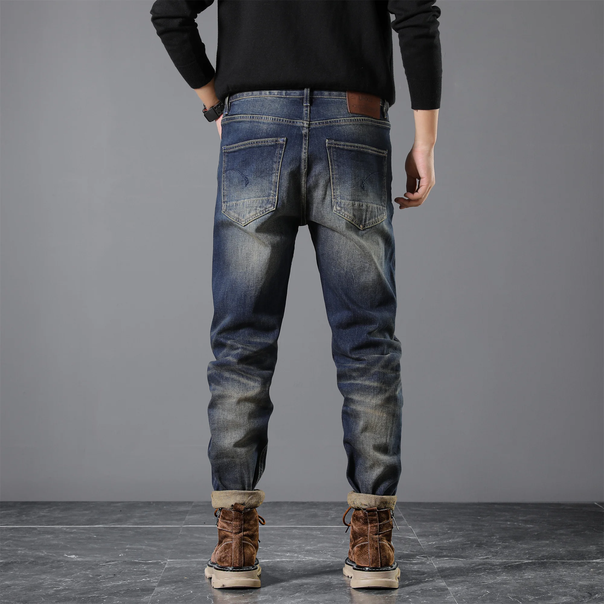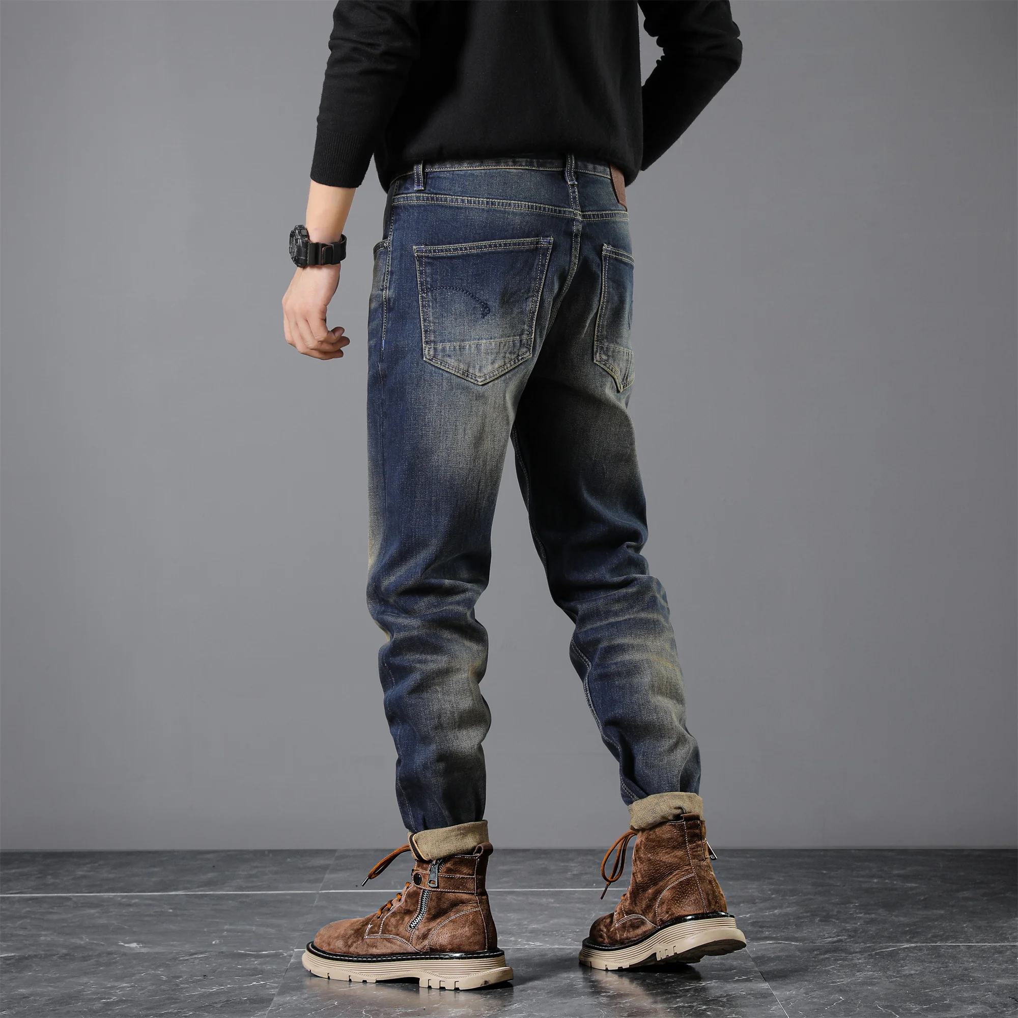 13.5oz 99% Cotton Red Selvedge Denim Men Jeans Retro Distressed Heavy Brushed Washed Straight Pants High Qaulity Casual Trousers