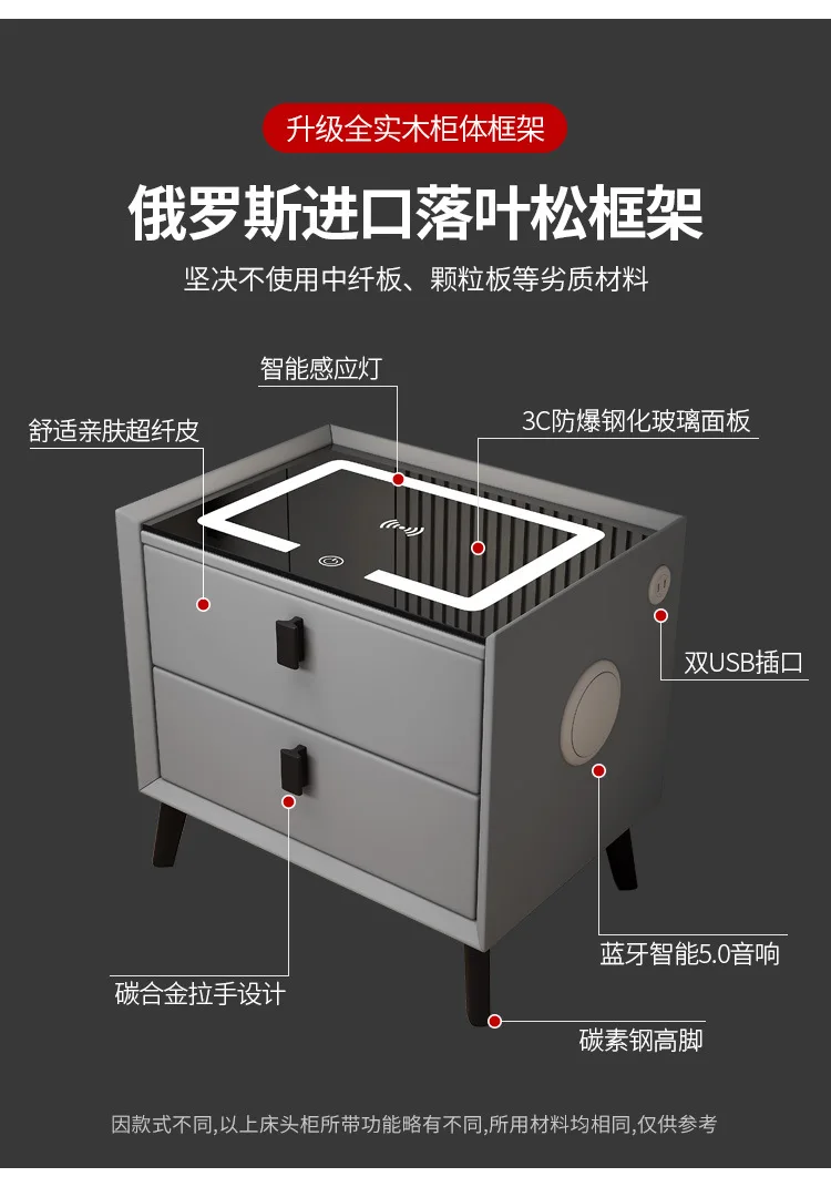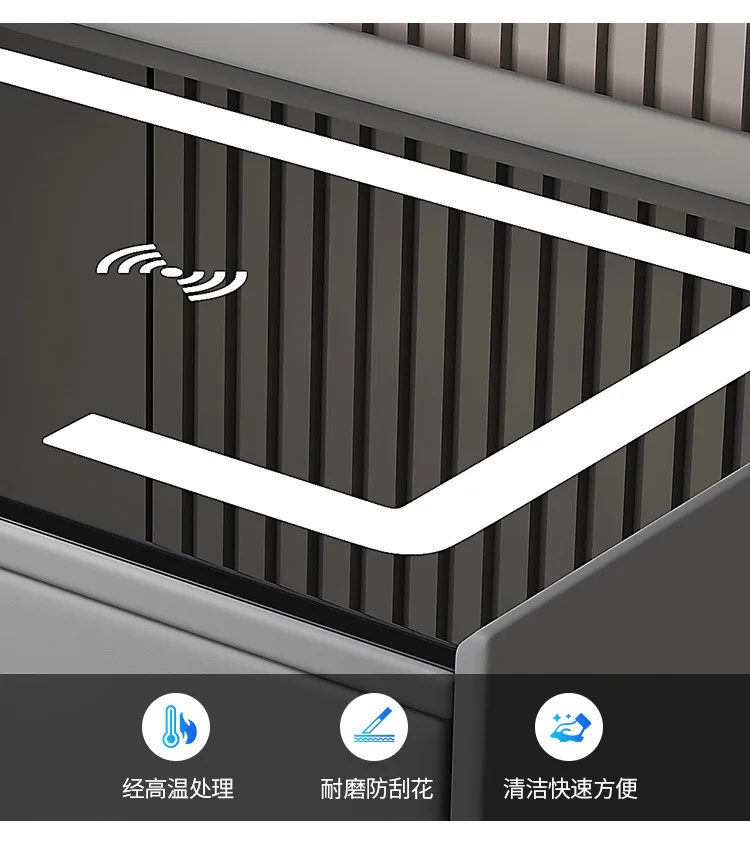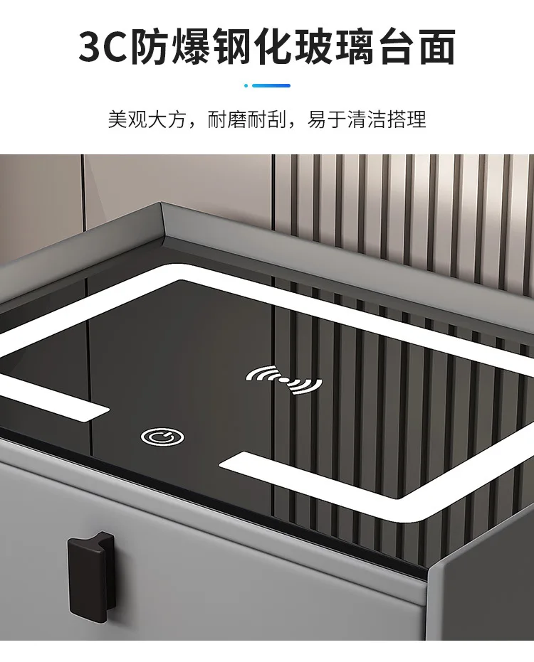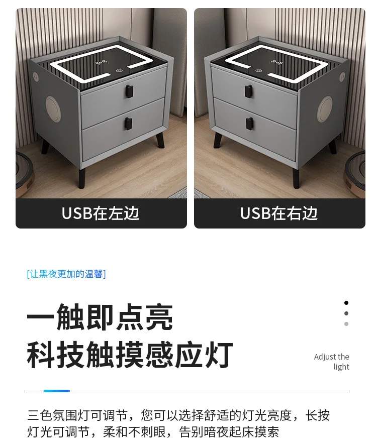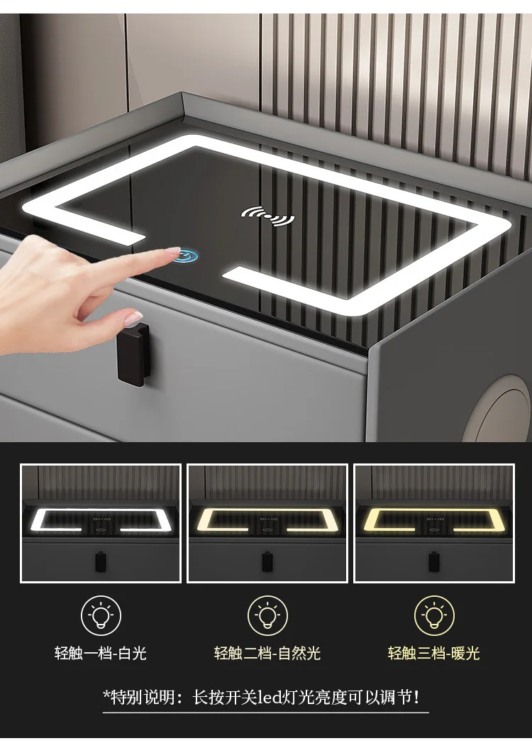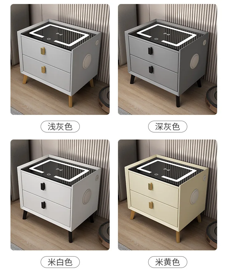 Wood Smart Bedside Table Simple USB LED Large Nightstand Modern Bedroom Bedside Table Locker Furniture Bedroom Glass Cabinet